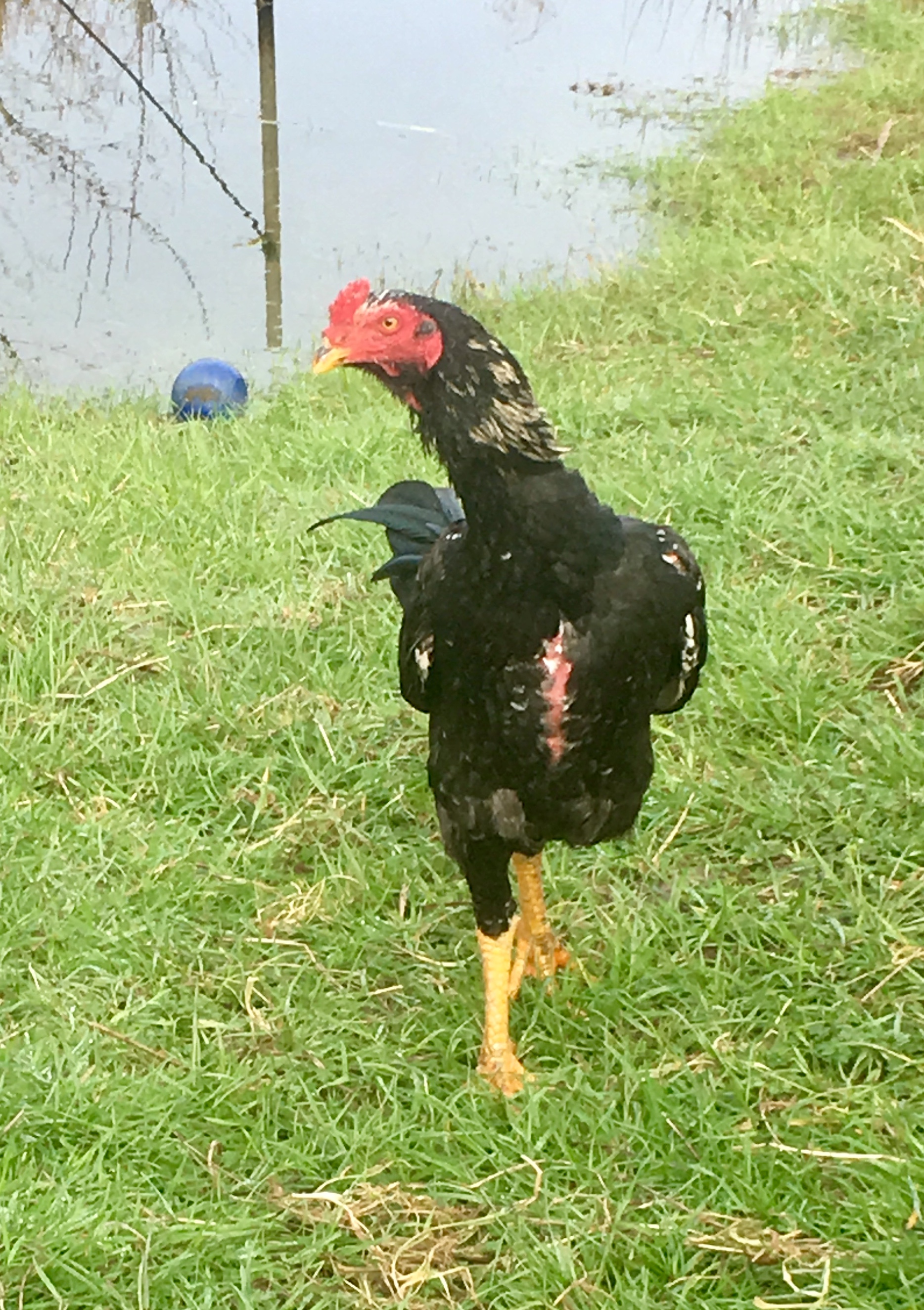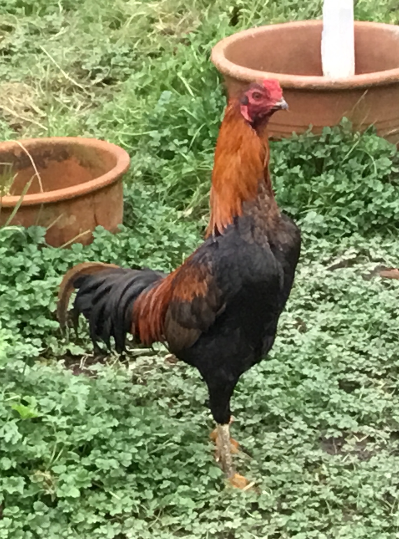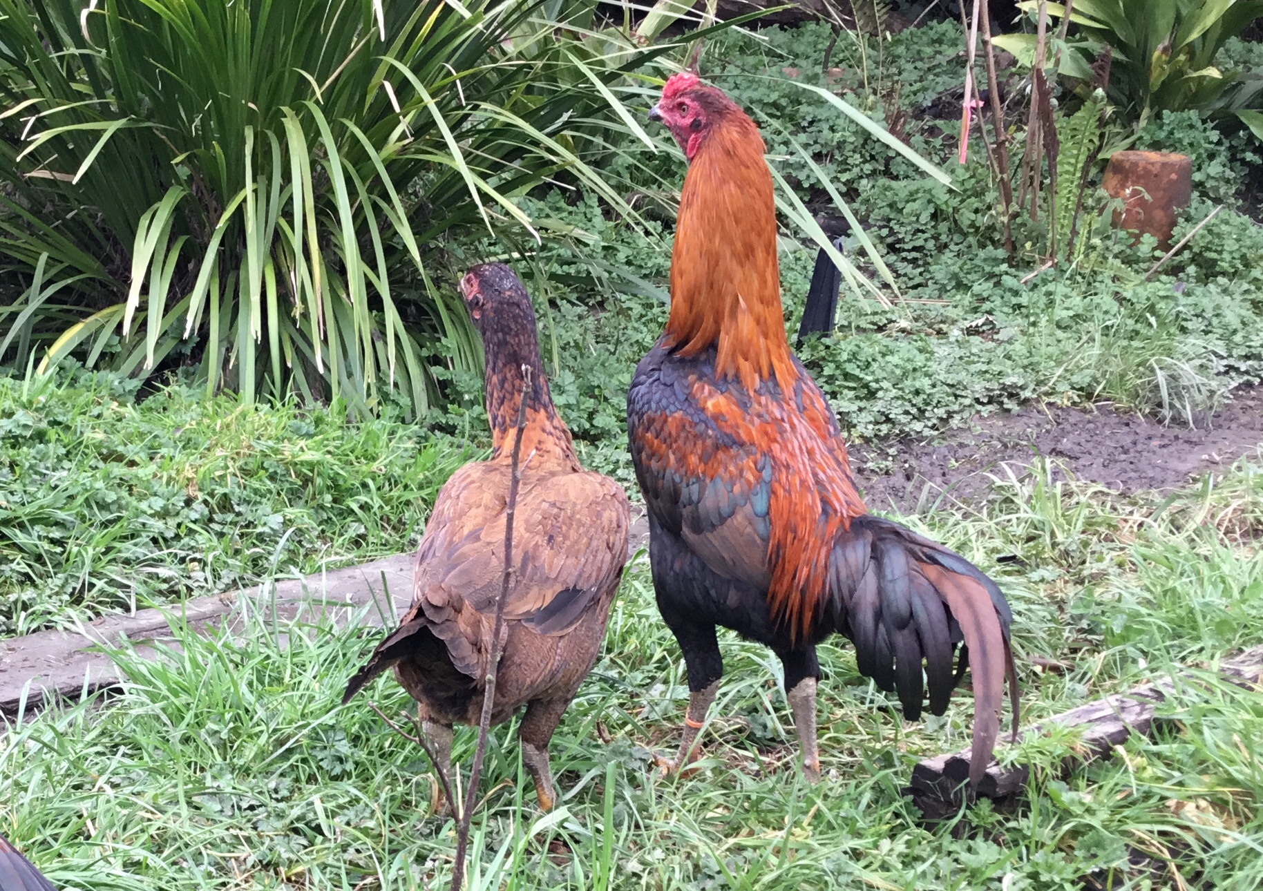 We keep more than one family of Thai. We have a family of Hmong Thai which throw many pumpkin roosters. They are “relatively pure” Thai which have maintained the breed as I received them from local Hmong community. Pumpkin is a heterozygous genetic expression of black genes and blond genes. Whites also appear in this family. Hens tend to be penciled brown.