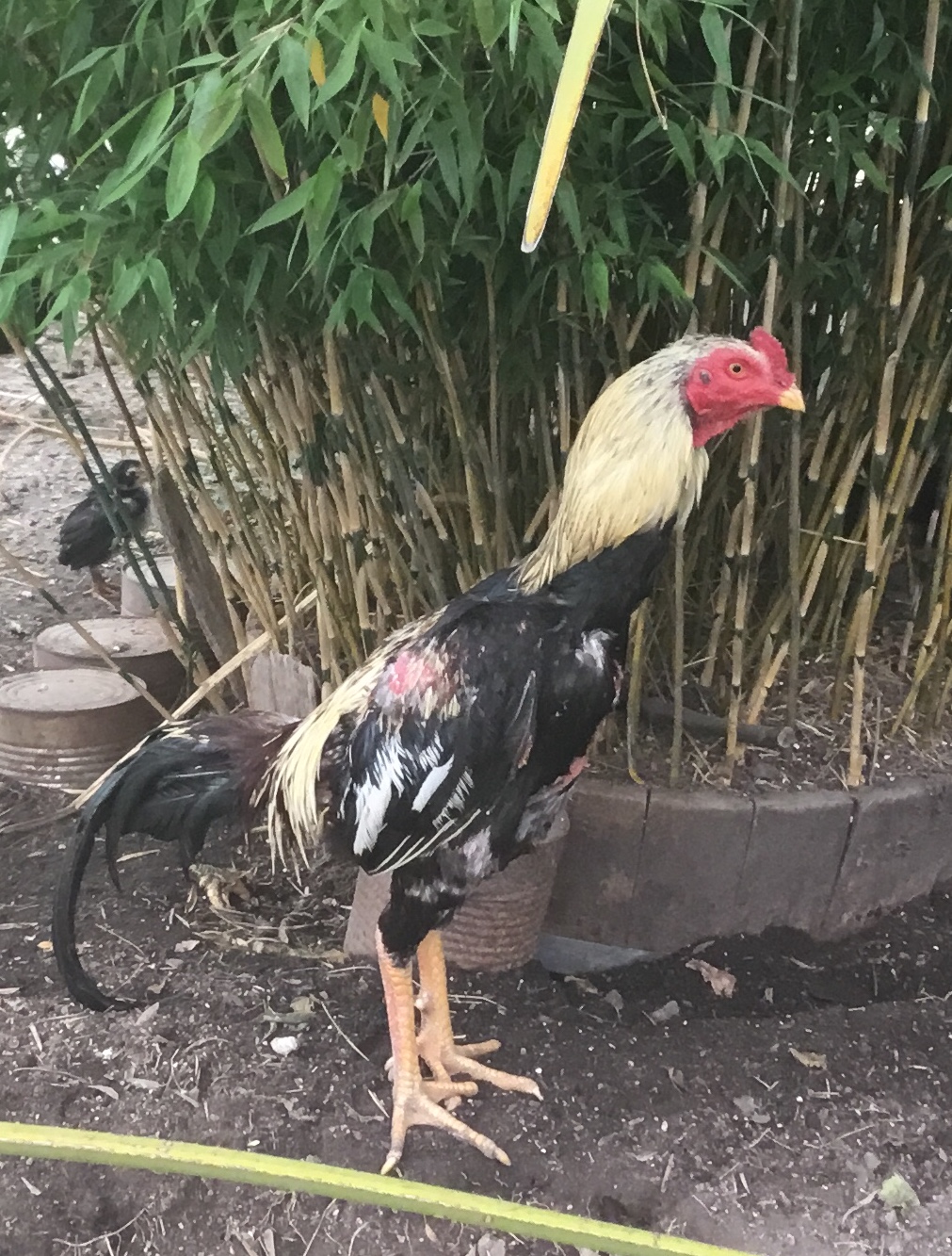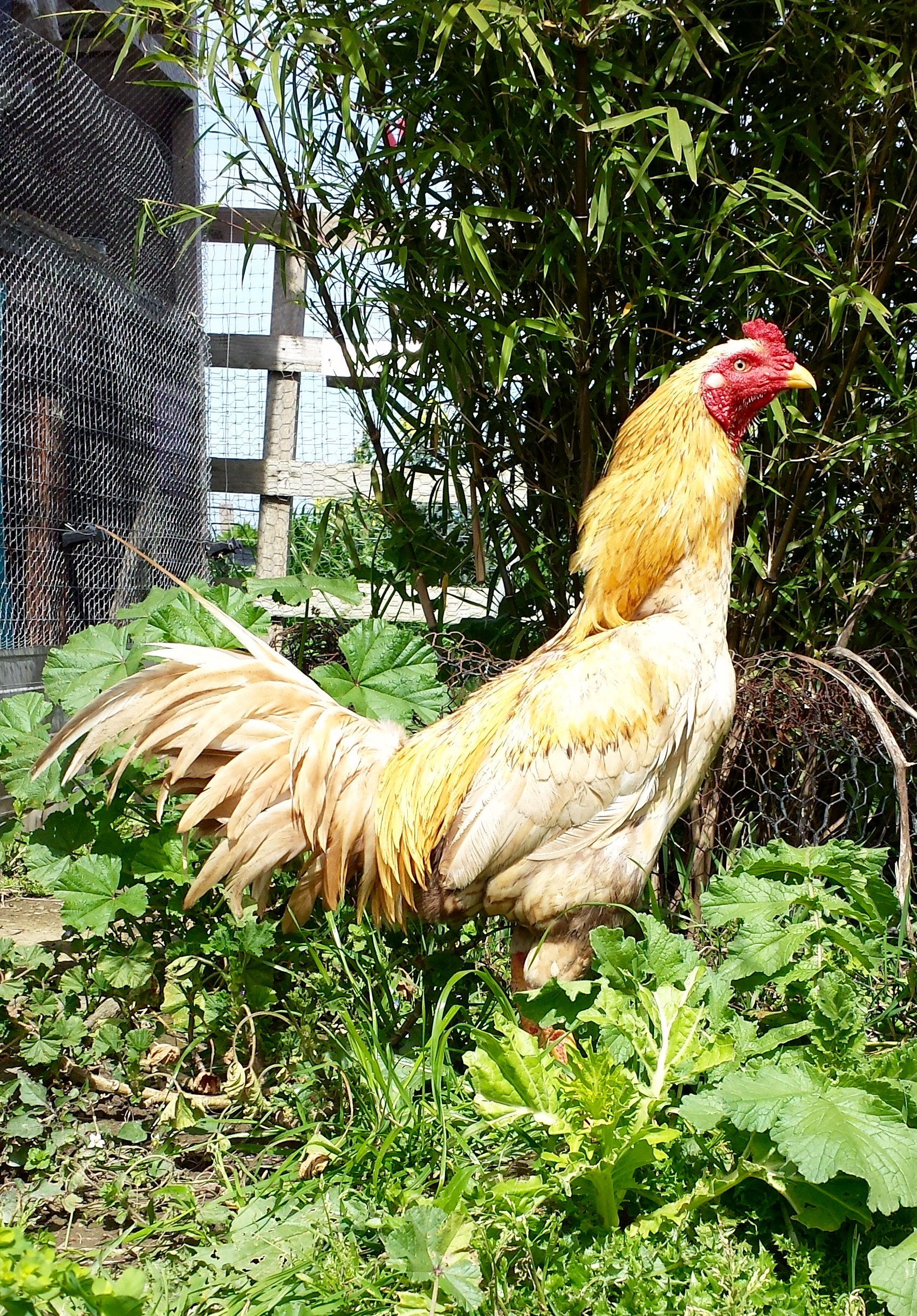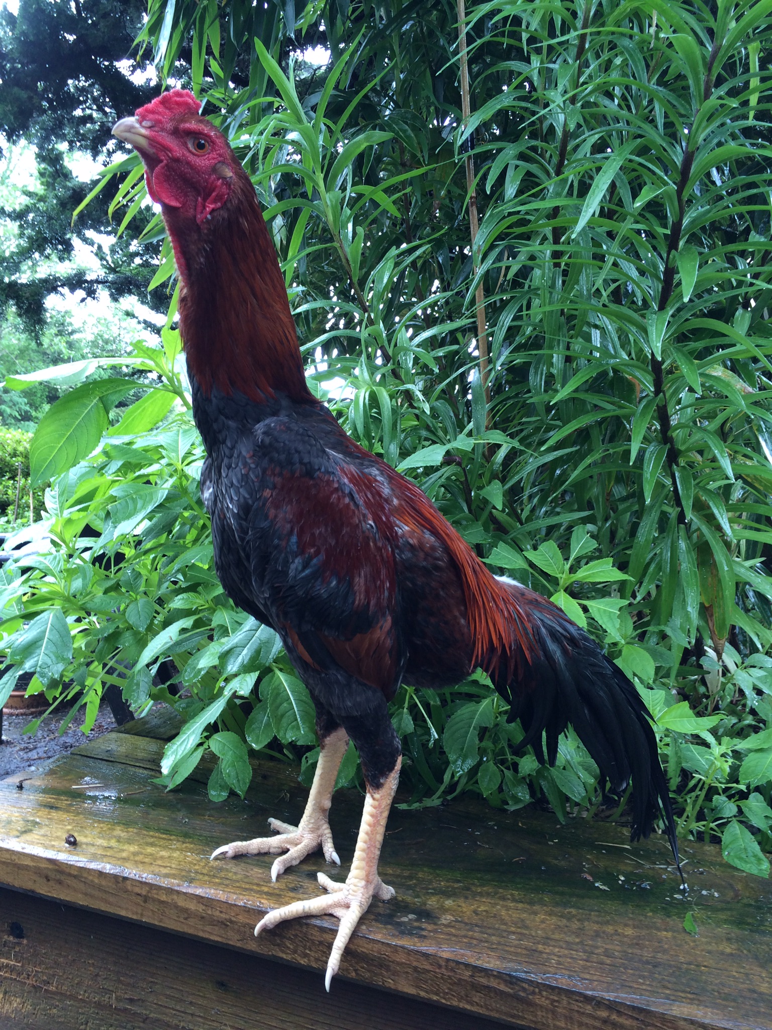 One branch of our Thai family has a trace of Blond Shamo cross (who was Grandfather of one blond Thai hen named Cricket). I show photo of Shamo x grandfather next: (blond over black produces Pumpkins.)