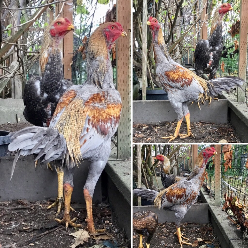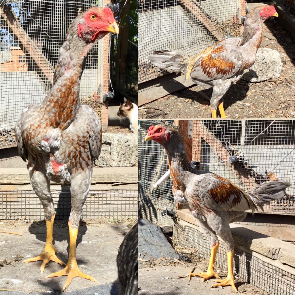 Kadir. 8# stag at c 10 months, Sporty body Saigon.Big Pama A White Dragon very young Stag; see him mature in next photo belowA White Dragon, ‘Bahjat4‘ aka ‘Tex‘, he here is pretty much Cocked out…in 2025 he was bred primarily to Pearl 2nd (a wheaton ganoi hen 7 1/4# very wide head) : He will put over her daughter Berta in 2026, and over a white hen, too. Ishmael: a longbody Saigon-Thai Breeder in days past. by 2025 we really have pretty near discontinued pure Thai, to focus on Ganoi and Mads. (a very few remain yet, but seriously LTD) Having said that, his LONG BODY FORM has been continued in one of our strains of ganoi , essentially a cross, resulting in similar form but overall LARGER bird. (close to 9#)a YOUNG Ishmael again. Longbody SaigonNoob Qes Loj was our Pumpkin breeder… Hmong style pit ‘Thai’. Neither Hmong Thai nor Pumpkin available any longer.Noob Qes Loj again. Pumpkin Hmong pit birdRandom Ganoi from Modoc (Viet) Ganoi lineGanoi – Modoc (Viet) Ganoi with our Texas (Viet) Ganoi line crossed in, add a dash of Hmong pit Thai. It’s from this bird and his black father, (and black Hmong Thai grandma), that our WHITE DRAGON descended.Modoc (Viet) GaNoi X Texas (Viet) GaNoi lines with dash Hmong pit Thai.Mixed Ganoi lines with tad admix of Hmong ThaiYoung “teenager” KO. 22 ounces. photo 1/11/22.One of our first Madagascar pulletsMadagascar juvenile. degree of nakedness varies some.Luke was our first Madagascar roo. Small 5.5#. Mean Ass BoiDariush and Fatima, Modoc line of Ganoi. HEAVY GANOI. Early acquisitions, original birds aquired from Modoc (with lineage to Vietnam). Fatima gives rise to Pearl, hence Pearl 2nd. hence Berta…all who are of this stocky type. Berta is our first ranking breeding hen for 2026 (under White Dragon Bahjat4). Pearl2 contributed significantly to 2025 hatches, but retired to Stockton now. Berta’s two best offspring from 2025 by another (MH/SGA) roo are with us and show special potential (see TSbbrRoo).Naked Neck GaNoi, Birchen, big boi: 9#3z Jan 10, 2022. Young…born Spring 2021 Been working on that Headgear. a STRONG NECK is essential quality for any bird, but quite obvious when naked.Saigon-Thai Cinnamon ‘partridge’ (‘BBR’) HenA somewhat ordinary cockerel. Not my best.very young cockerel KoShamo 22 ounces or about 625 grams. still filling out, but exp about 28 ounces max adult weight. photo 1/10/22. Chibi style. hand-raised. very personable.Young Cockeral NM-1 opb Saigon style Black legs. ( Black, green, yellow legs in tribe ) December 2021SAIGON style pullet Thaia Dec 2021…THALIA ; She became a lesser-breeder despite her one imperfection.Lg Pama-pattern Stag BIGKadir Sport body Saigon-Thai stagKadir Sport body Saigon-Thai Stag, 8# before one year of age. Nov ’21Kadir Saigon StagWheaton Saigon PulletIshmael long body Saigon-Thai Roo with Sister Hen ‘Isadora’ a Saigon Hen now in Virginia. She is sister of this Rooster Ishmael.9# Black GaNoi Stag x Hmong-Thai Dark Saigon style HenDark Ginger Saigon style – the dark ring around eye is a family trait.Naked Neck Ganoi Staglarge black Sumatra FLOCK has been rehomedFlock for offer ( one or two of the hens not seen in photos)We have discontinued Sumatra for the most part…a couple remain but we arent breeding them anymoreKo Shamo. We keep a two or three trios.. very LTD availablityOne of early offerings from Modoc Viet GanoiHen MadagascarZ-01 photo February 13 ‘21Ginger Saigon and familyNM-3 Ginger Greenlegs Saigon Thai Pullet. Photo taken Feb 13, 2021.NM-3 Ginger Saigon Thai young pullet w green legs October photoMadagascar Pullet pink band maddi hens in the early years BCBlue Wheaton Blue Wheaton c8# Stag 2-22-21Wheaton StagNM-2 Kong style Ganoi (with some admix) as a baby at 8 1/2# stag (matured well over 9 1/2# -named Fjalar ,an interesting bird, and contributed to some of our bloodlines)Noob Qes Loj, son of Canelo, one of my very early birds. Hmong pit Thai.Saigon Dark Hen (BBR)