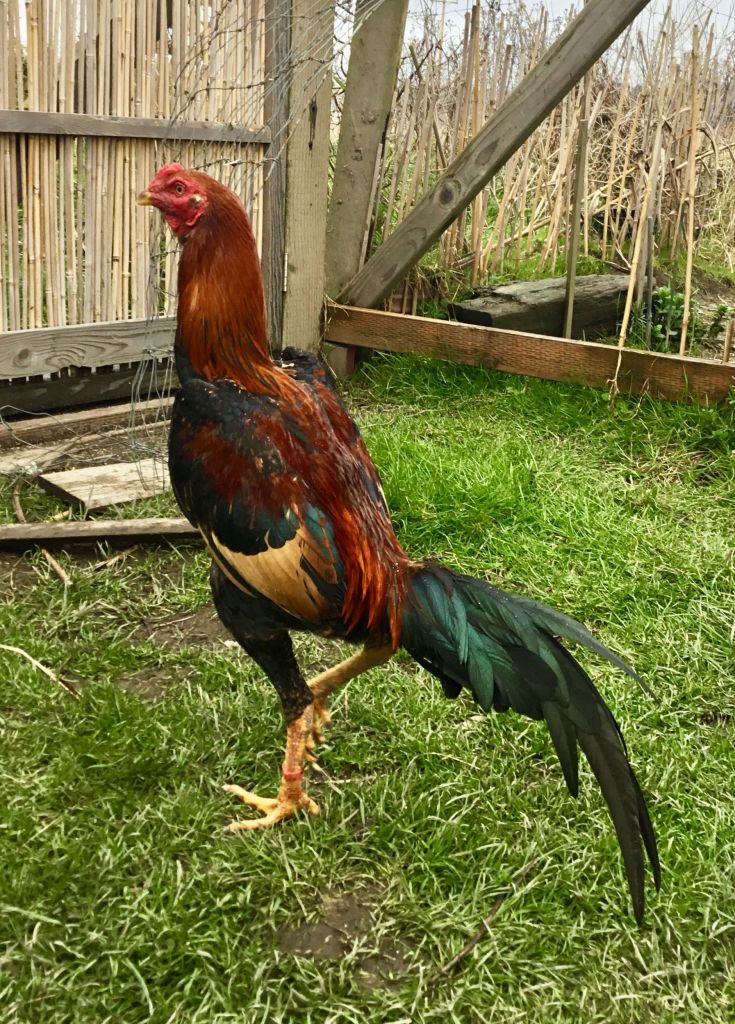 We were going to offer this rooster in April 2019. Hmong pit Thai. He contributed to earlier bloodlines, but later almost all this bloodline was quit, with minor exception. His father is Pumpkin Thai NQL and mother beige Thai (with trace of Shamo) named Cricket. I